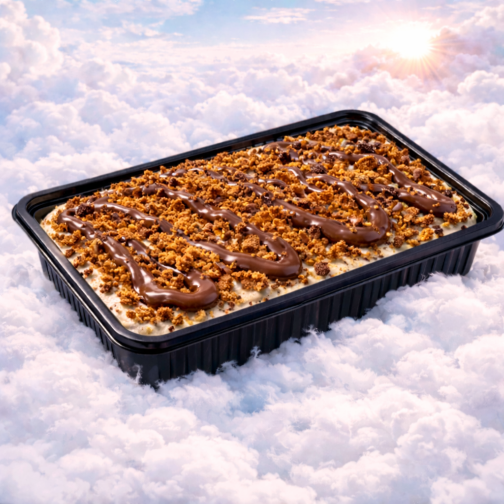 Tiramisu maison préparé avec soin garni de nutella et de biscuit spéculoos. À manger à deux ou solo pour les plus gourmands.